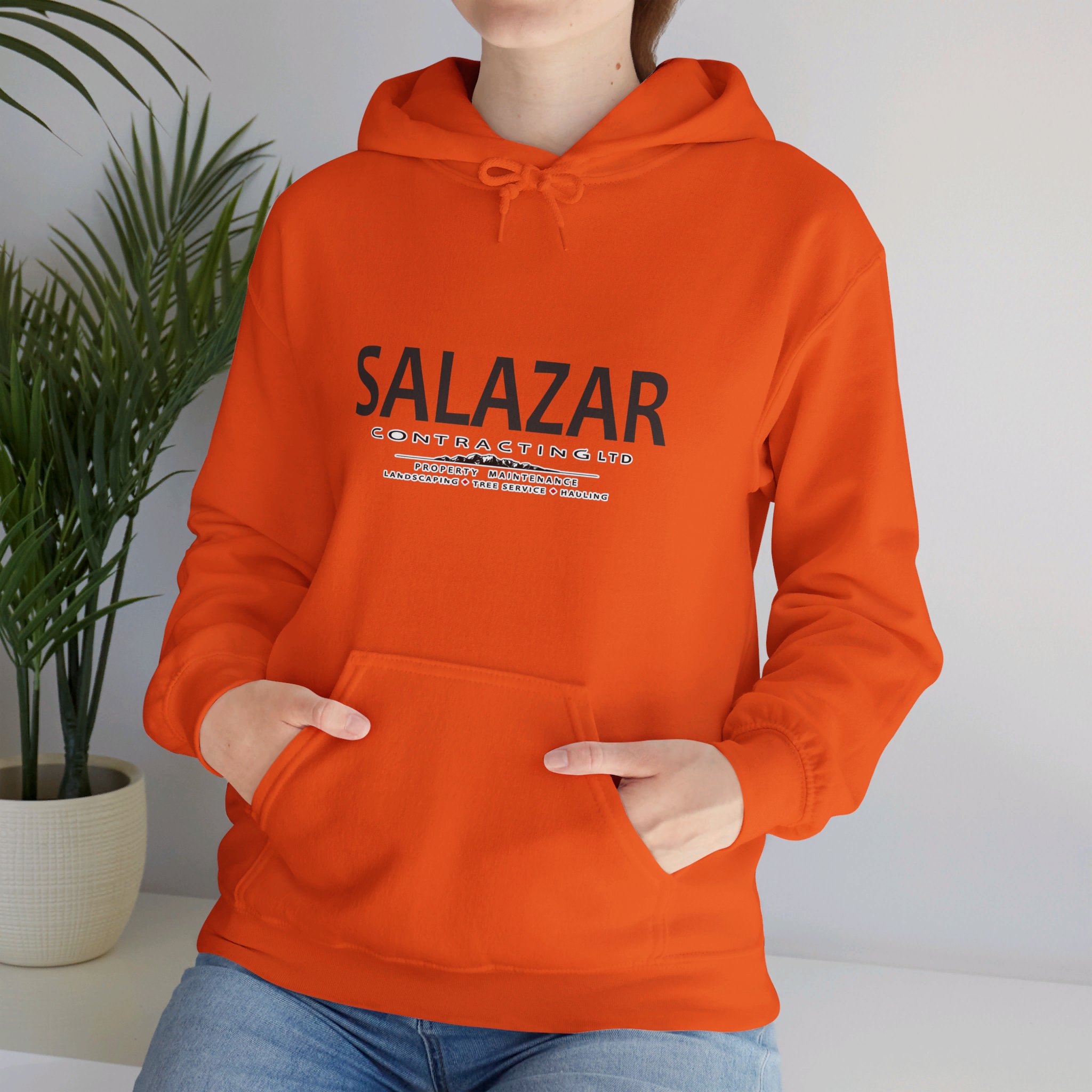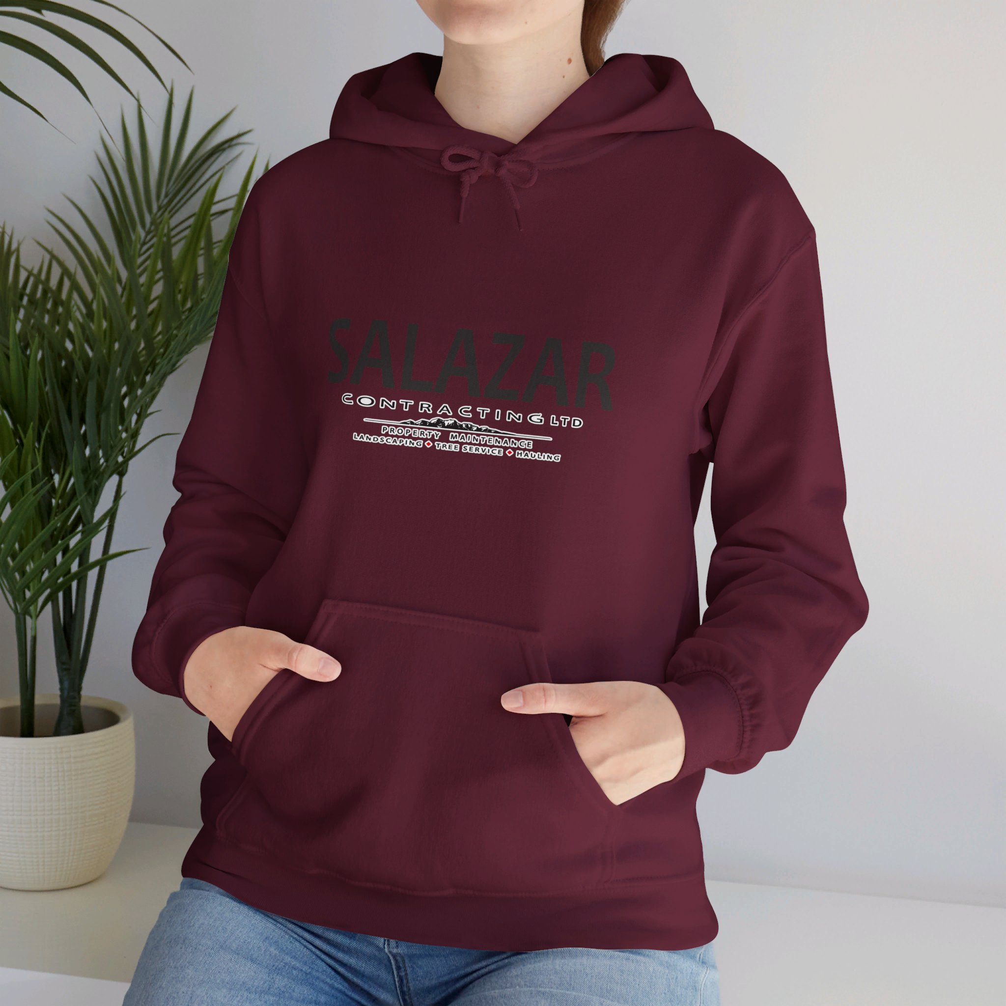 This unisex heavy blend hooded sweatshirt is relaxation itself. Made with a thick blend of cotton and polyester, it feels plush, soft and warm, a perfect choice for any cold day. In the front, the spacious kangaroo pocket adds daily practicality while the hood’s drawstring is the same color as the base sweater for extra style points.